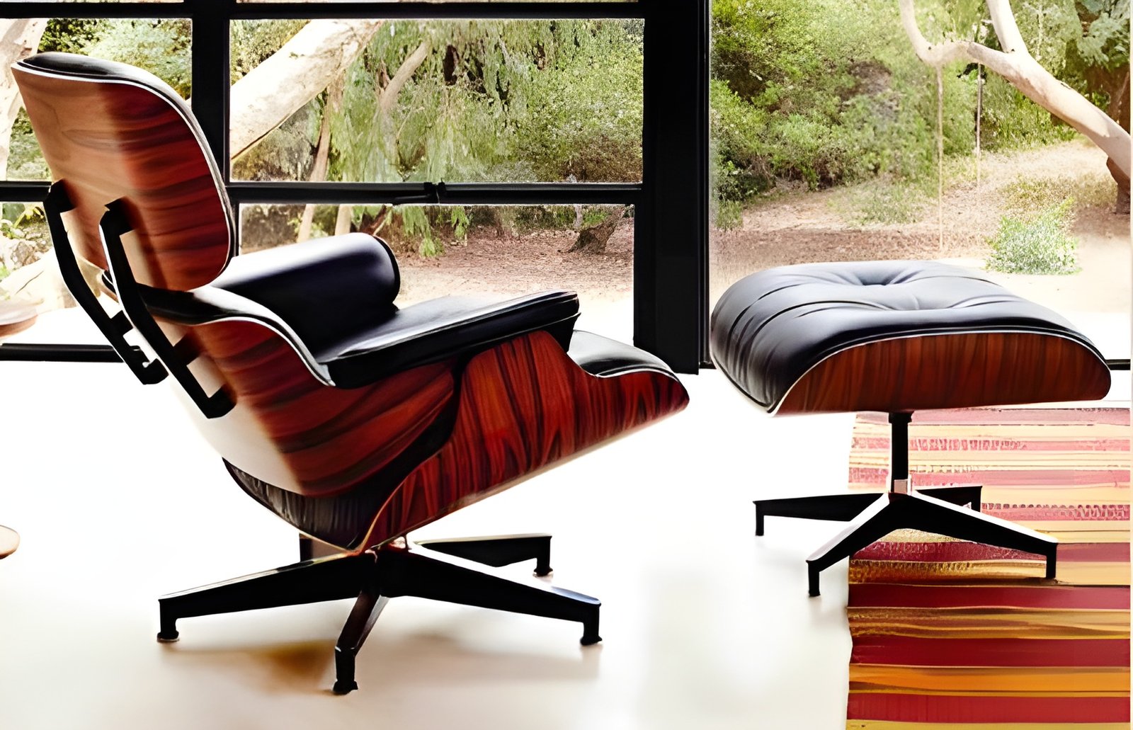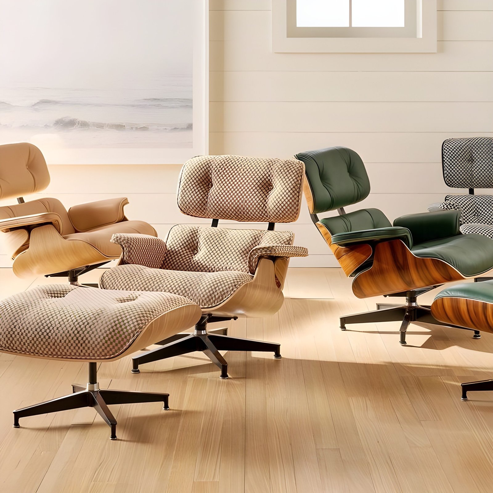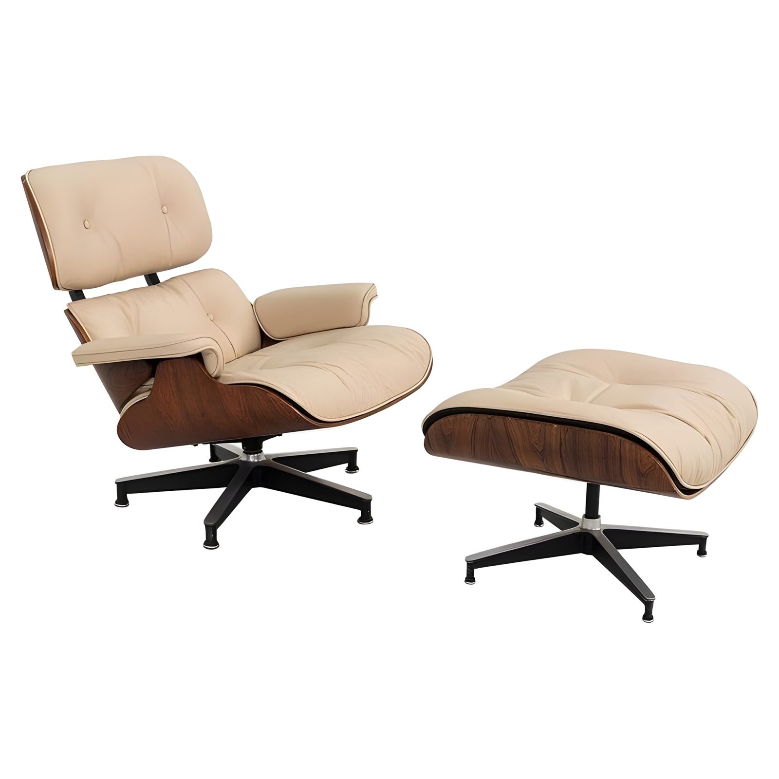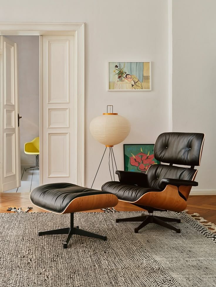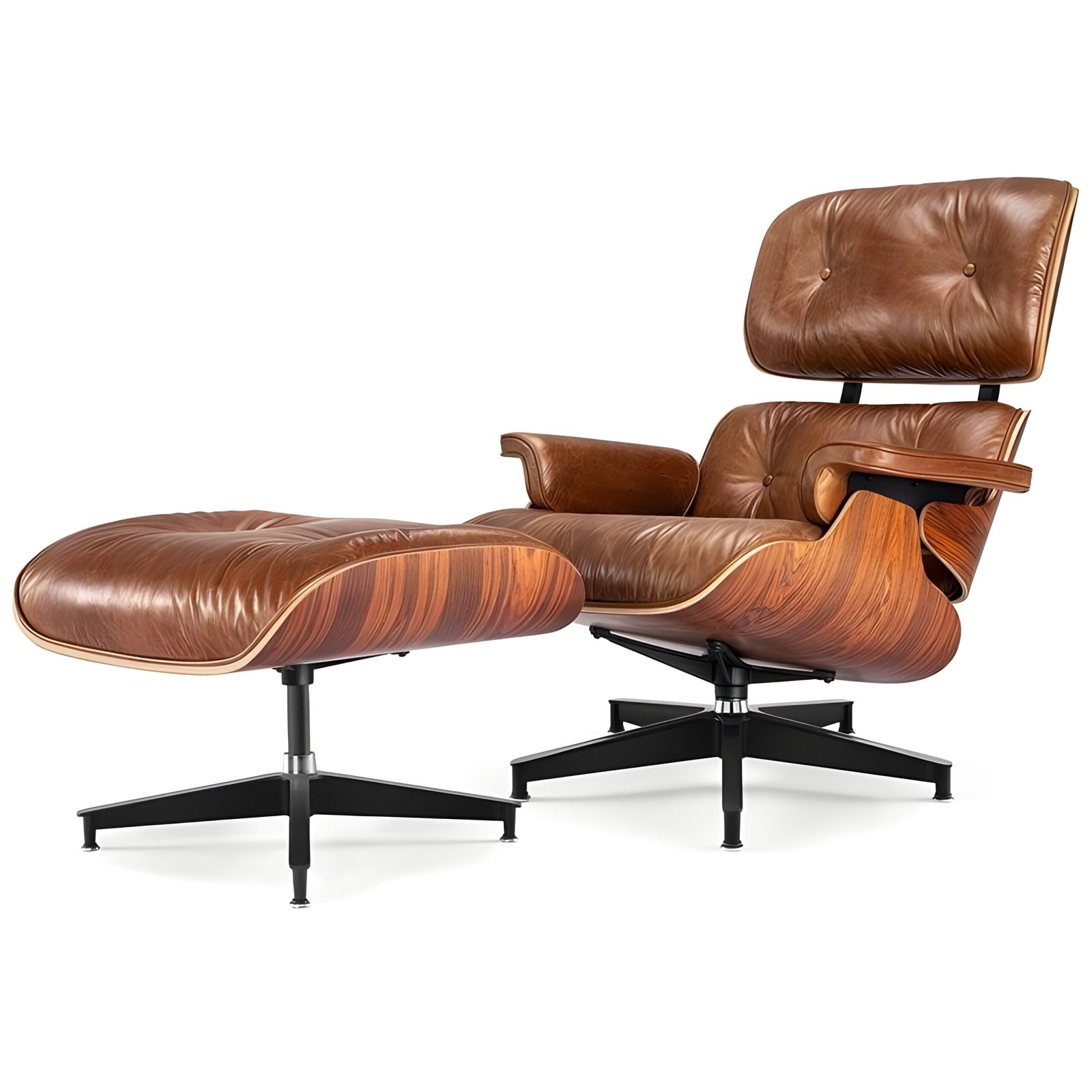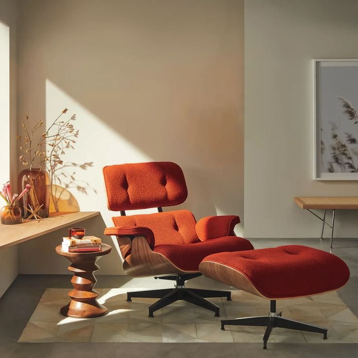 The Eames Lounge Chair and Ottoman is an iconic mid-century modern furniture set, designed by Charles and Ray Eames. Crafted with luxurious leather upholstery and molded plywood, it offers exceptional comfort and timeless elegance. A perfect blend of style and ergonomics, this piece adds sophistication to any living or office space.